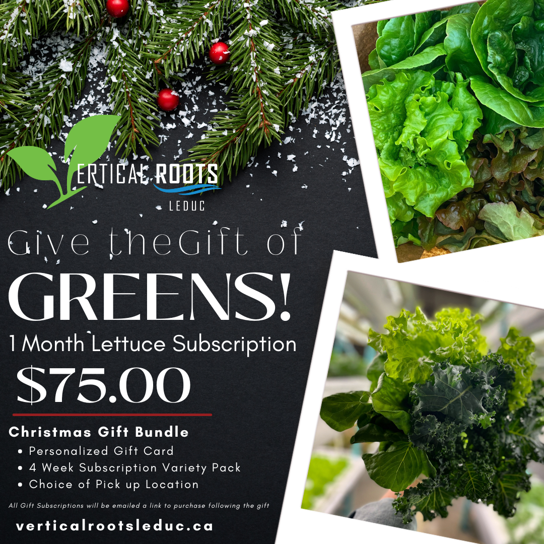 Looking for a unique, LOCAL and FRESH gift to give someone special this holiday season? With this GIFT of GREENS you will get a WEEKLY taster pack AND fresh herb of your choice delivered weekly for FOUR weeks. Its a great option for a loved one in your life to get them off to a FRESH and HEALTHY start in 2026!
